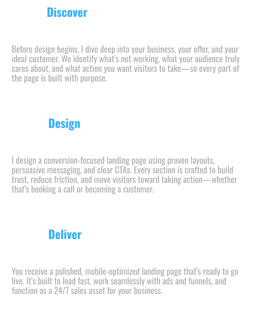 I’ll help you generate more leads, book more calls, and increase sales with a page designed to sell.